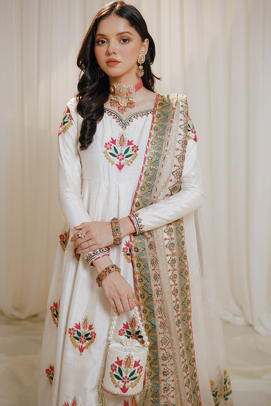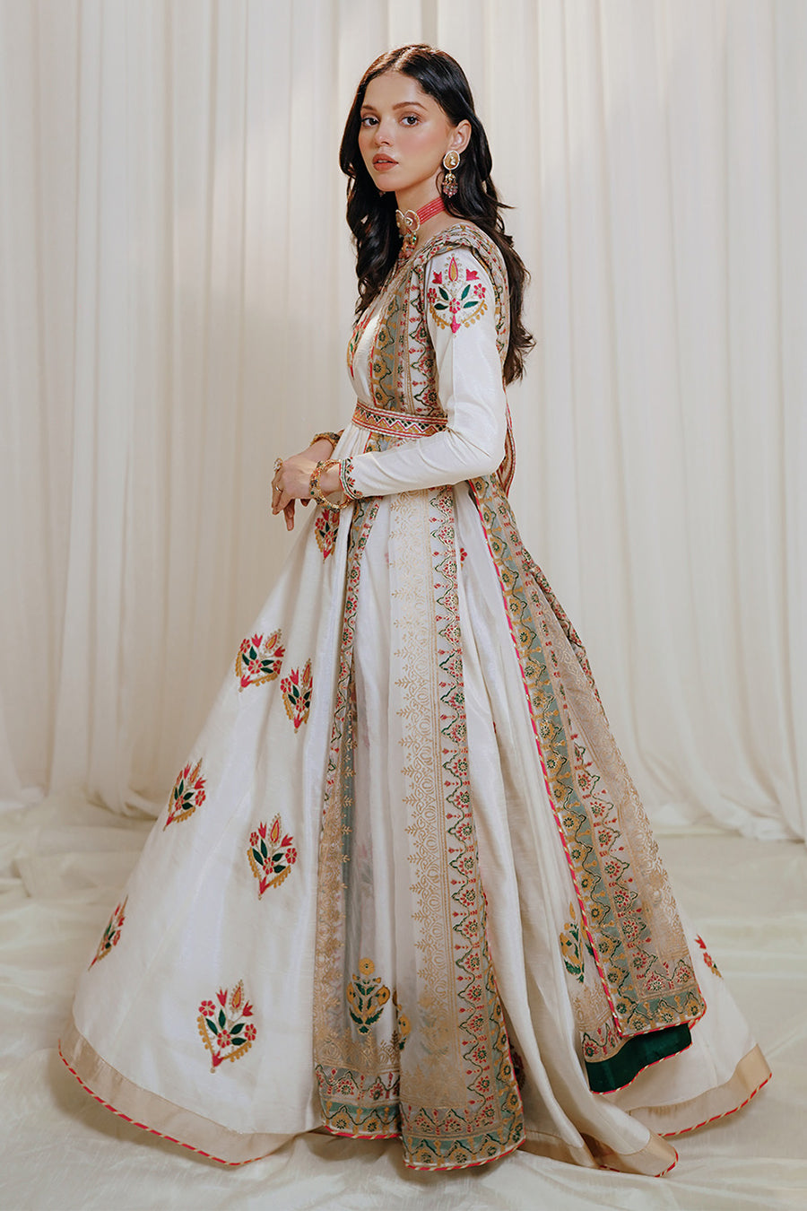 Introducing the exquisite "Noori" dress! Made with raw silk and featuring 12 panels and a 162 inches flare, this dress is a true showstopper. The machine embroidery on the flare, sleeves, and neckline adds a touch of elegance. With embroidered tassels at the back and gotta lace all around the flare, it exudes grace. The gotta pink lace on the sleeves and flare adds a beautiful finishing touch. The organza dupatta, embellished with hand block print, complements the dress perfectly. It comes with a cancan attached for added volume and an embroidered pouch. Complete your look with the separate belt adorned with embroidery. This dress is absolutely perfect for nikah and waleema functions, radiating beauty and sophistication. 💖✨ #Noori #RawSilkMaxi #ElegantDetails #PerfectForSpecialOccasions