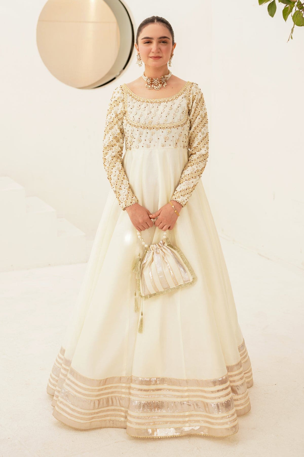 From the Nigaah-e-Shokh collection, Afroz Jahan is an elegant long maxi made with premium raw silk and breeze net.