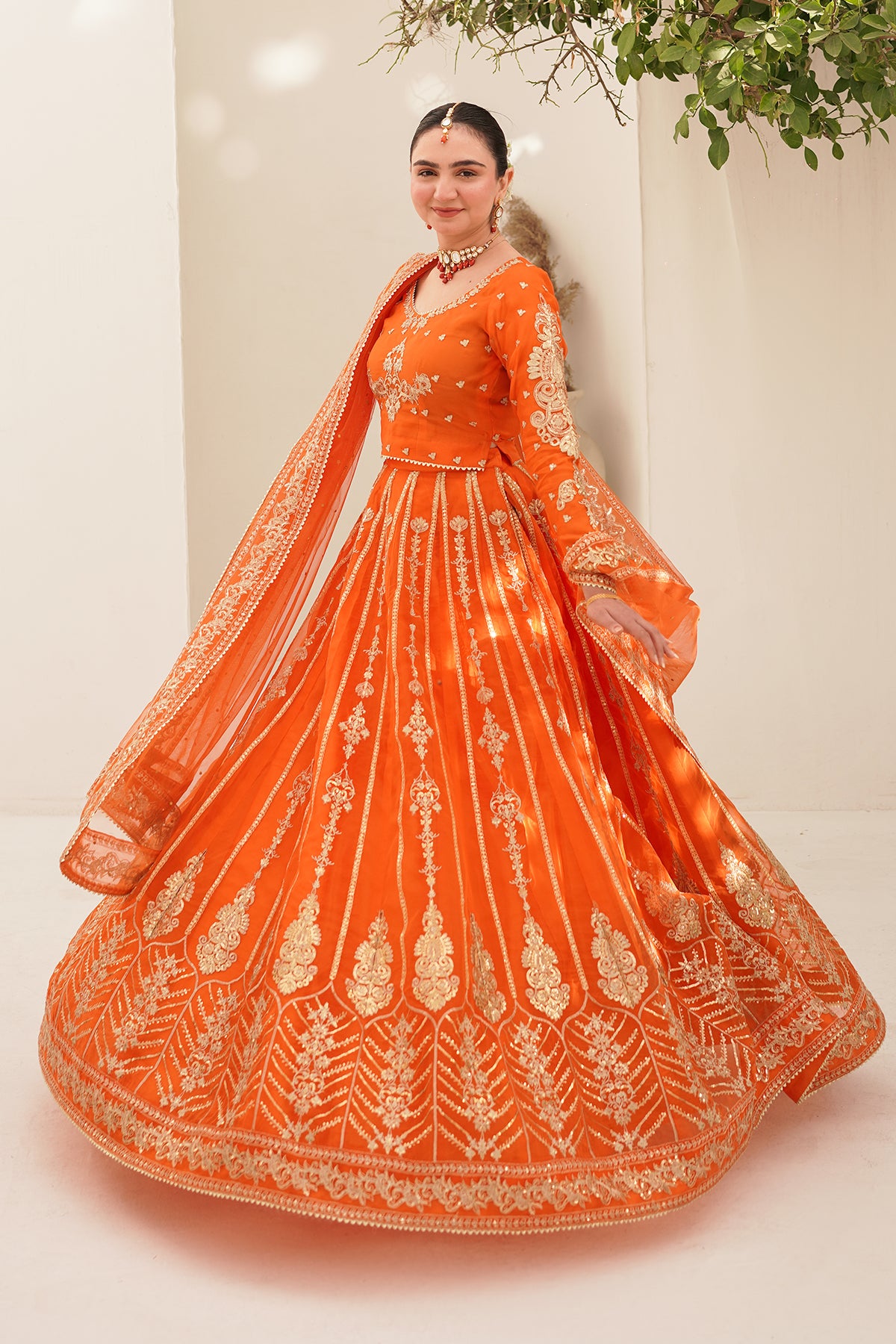 From the Nigaah-e-Shokh collection, Nayaab is a beautiful lehenga choli made with premium organza, silk, and breeze net.