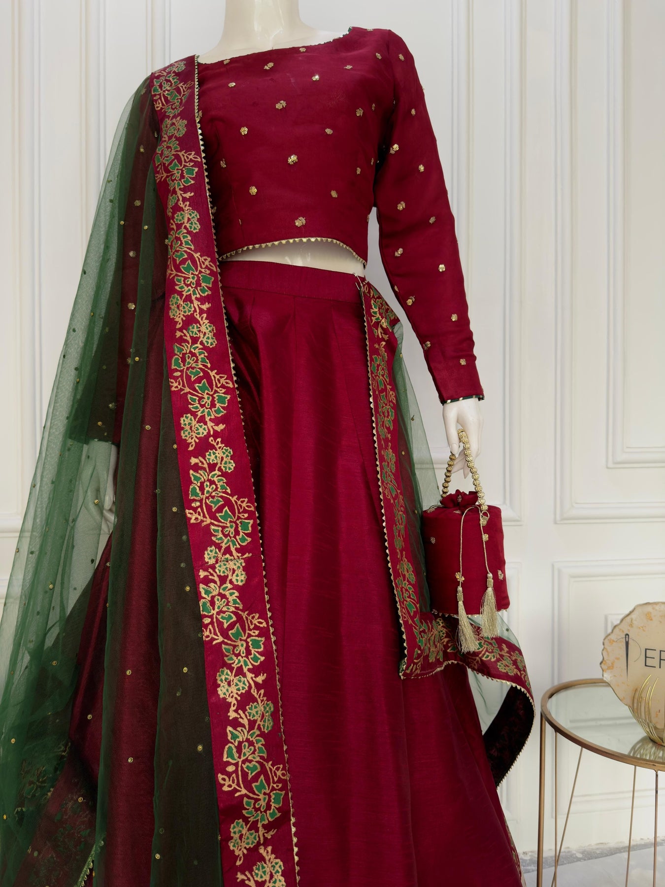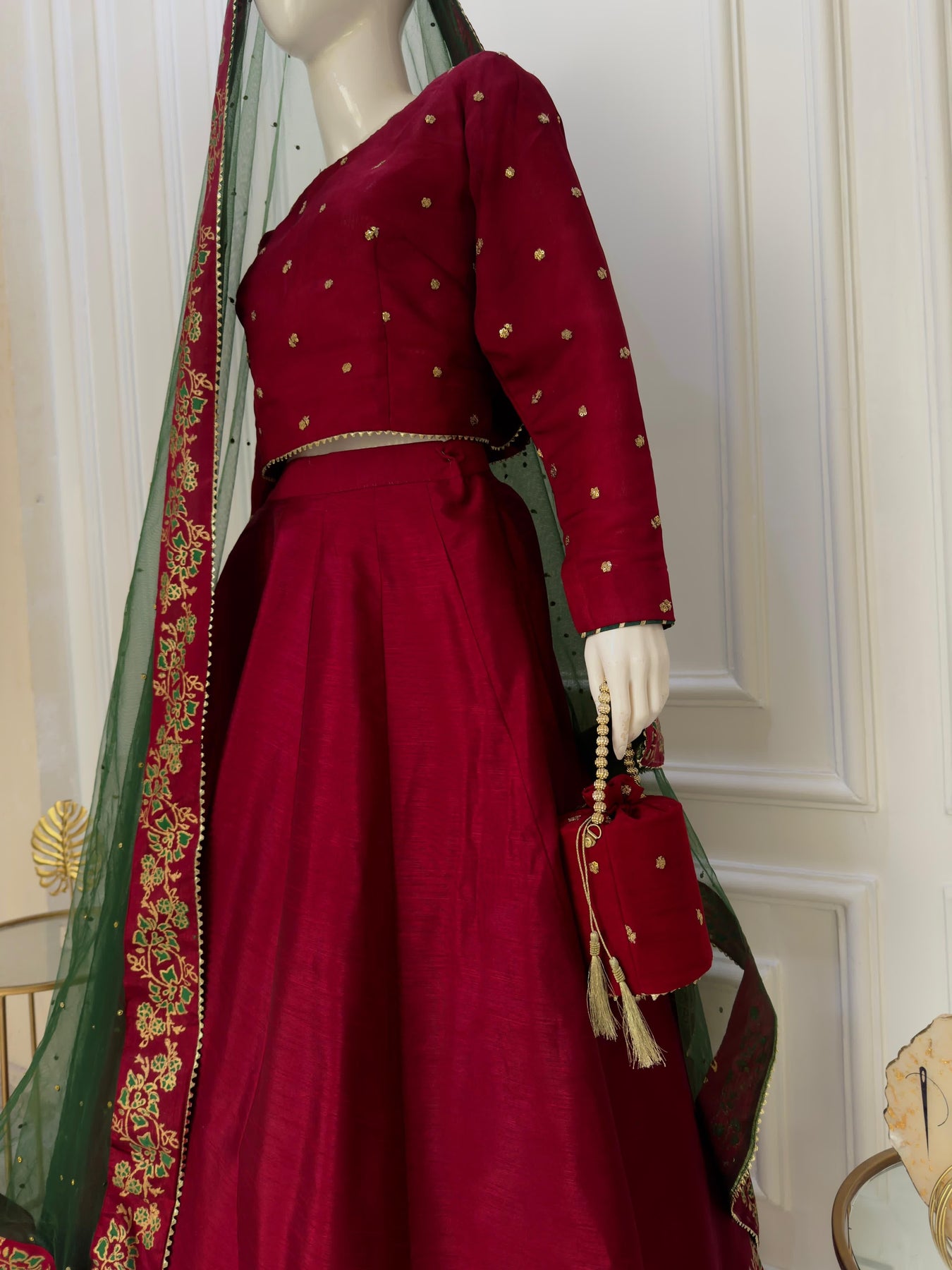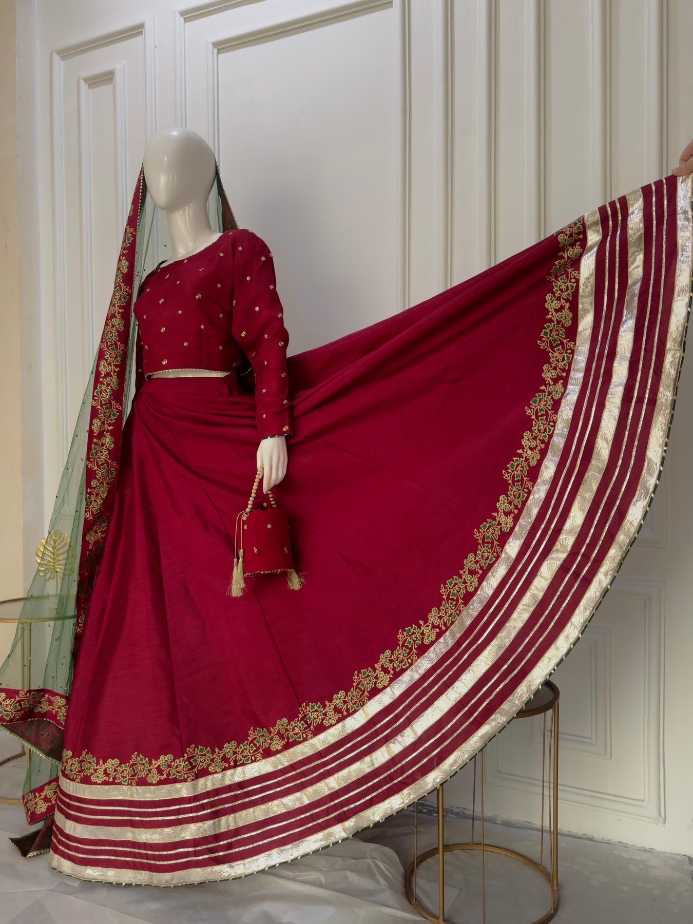 Fabric: Medium Chiffon Choli, Premium Raw Silk Lehnga & Net Dupata