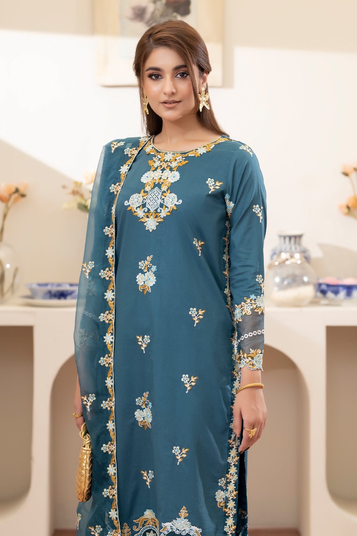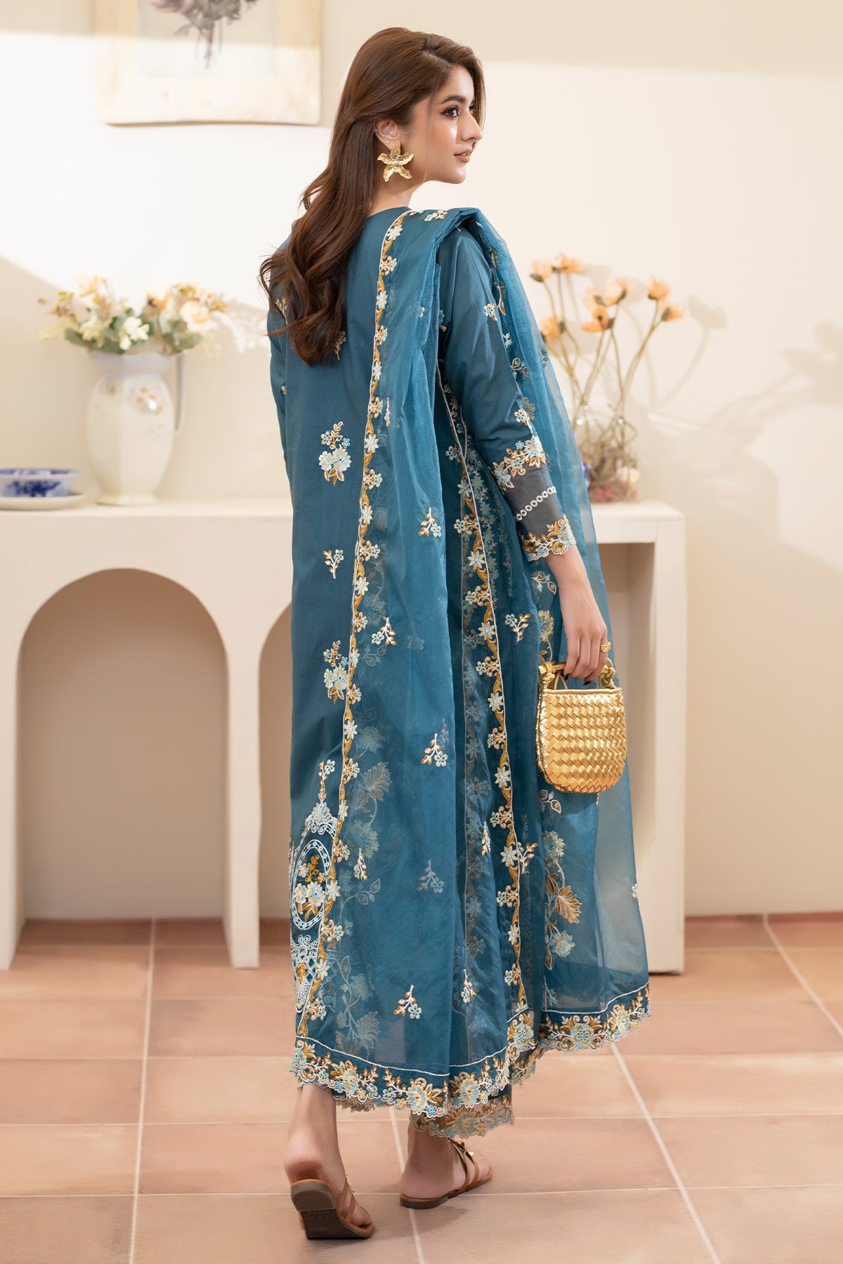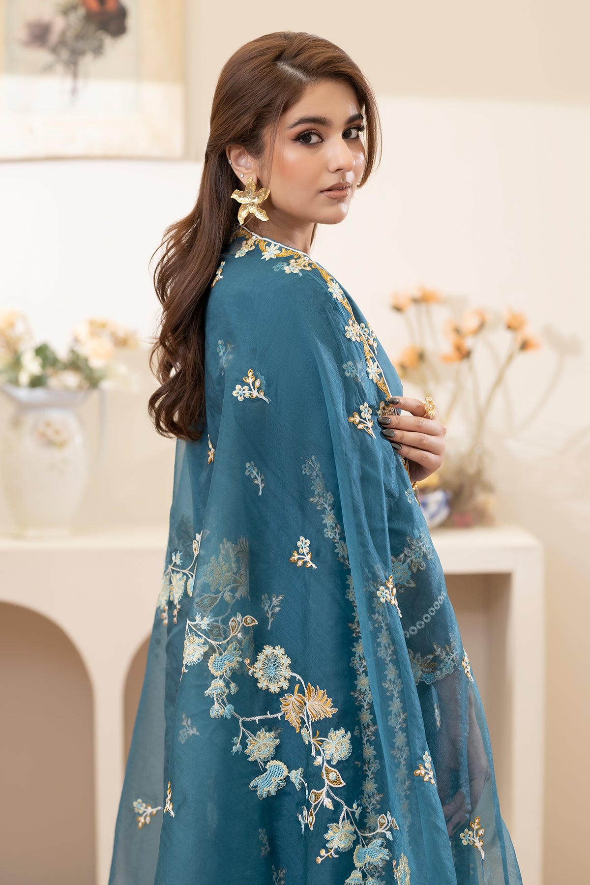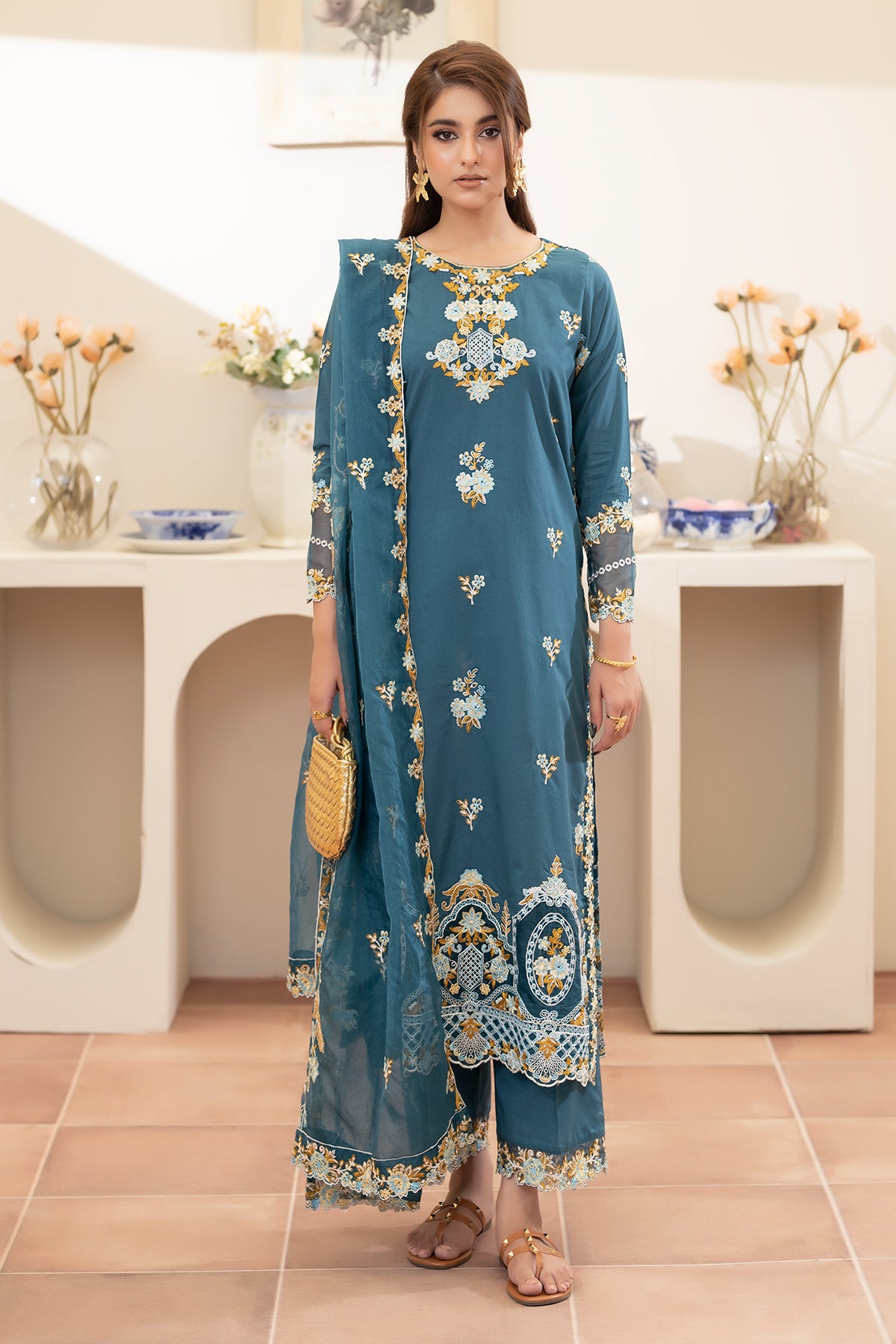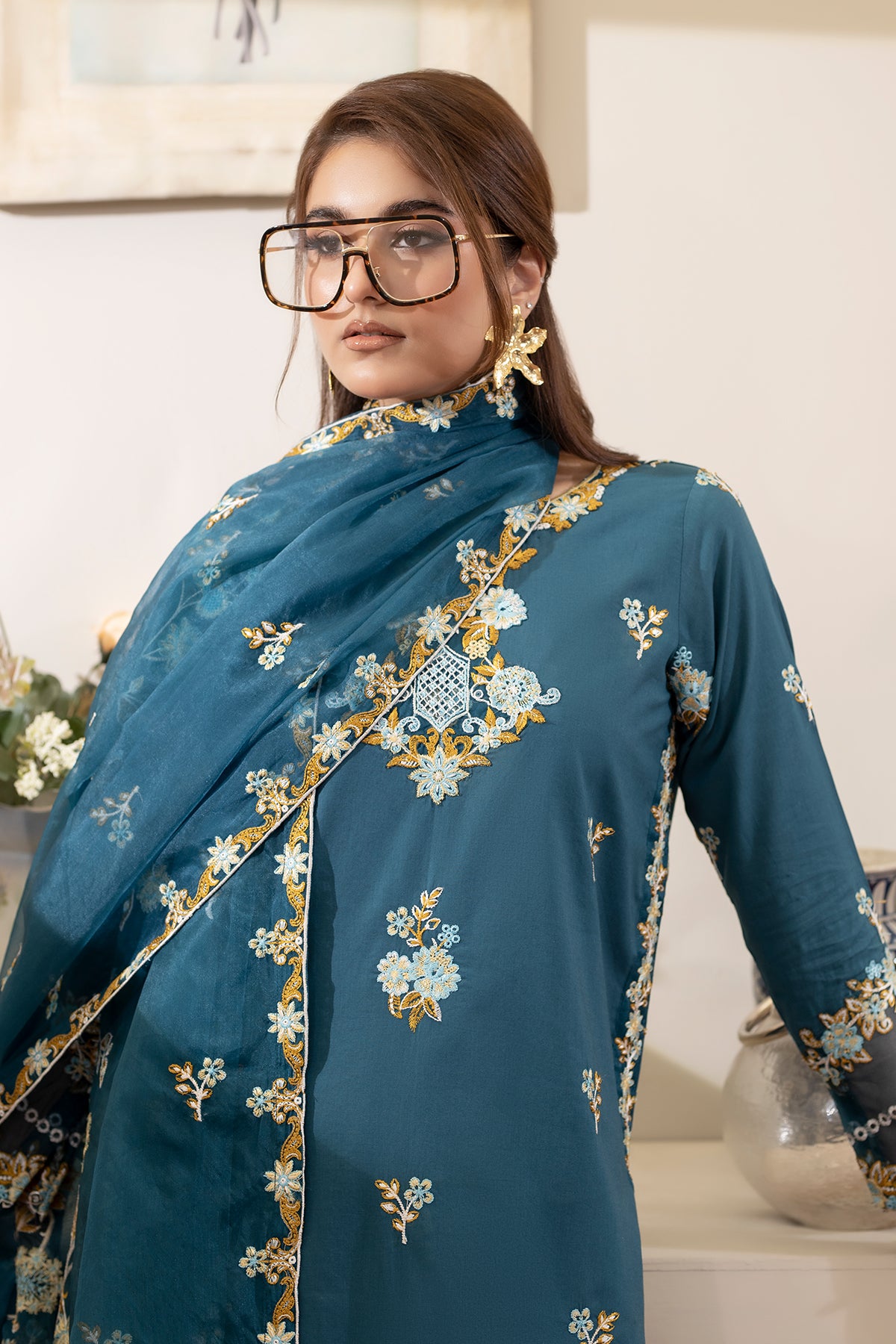 Embrace sophistication with Hazel from our Khaas Collection. Designed in premium lawn, this straight long shirt features exquisite embroidery, adding a touch of finesse. Paired with Culottes pants and a graceful medium organza silk dupatta, it’s the perfect choice for a refined festive look.