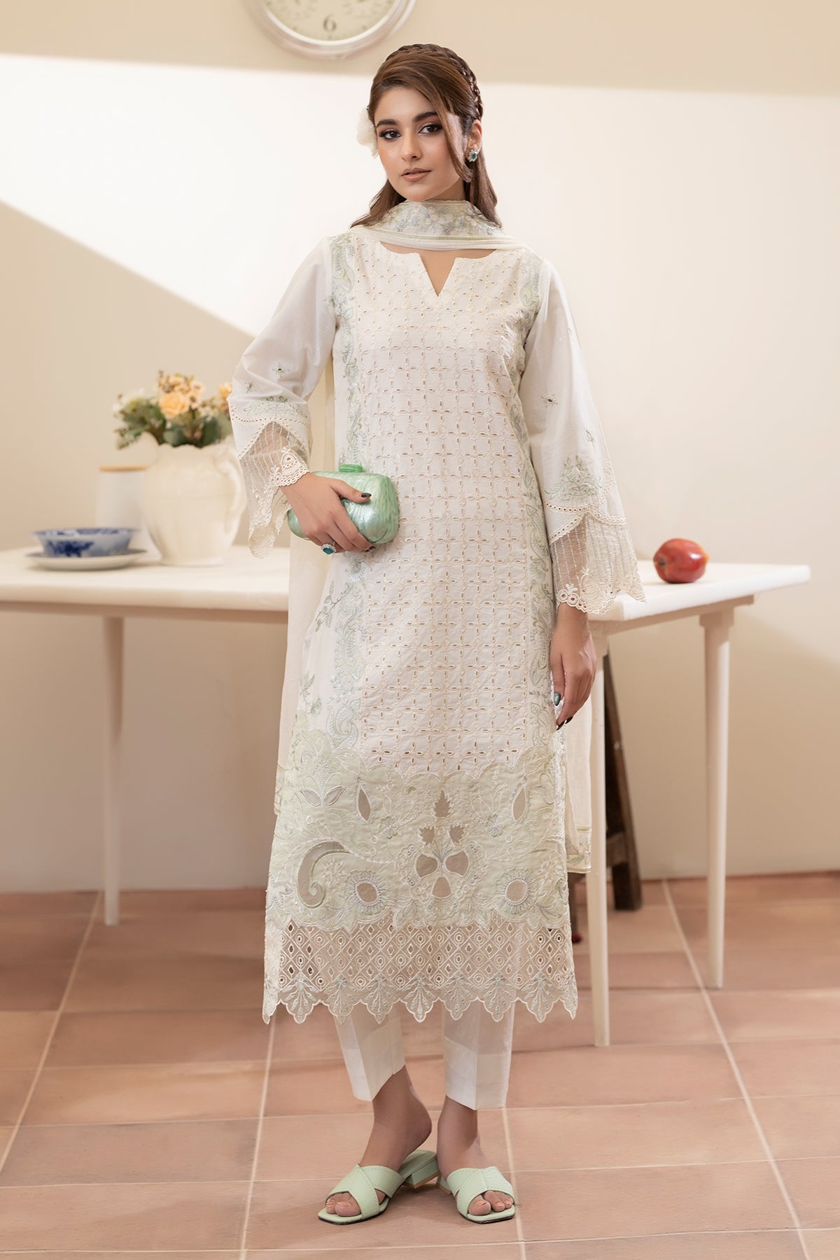Embrace sophistication with Siara from our Khaas Collection. Designed in premium lawn, this straight long shirt features exquisite embroidery and cutwork, adding a touch of finesse. Paired with straight pants and a graceful medium Khadi Net dupatta, it’s the perfect choice for a refined festive look.