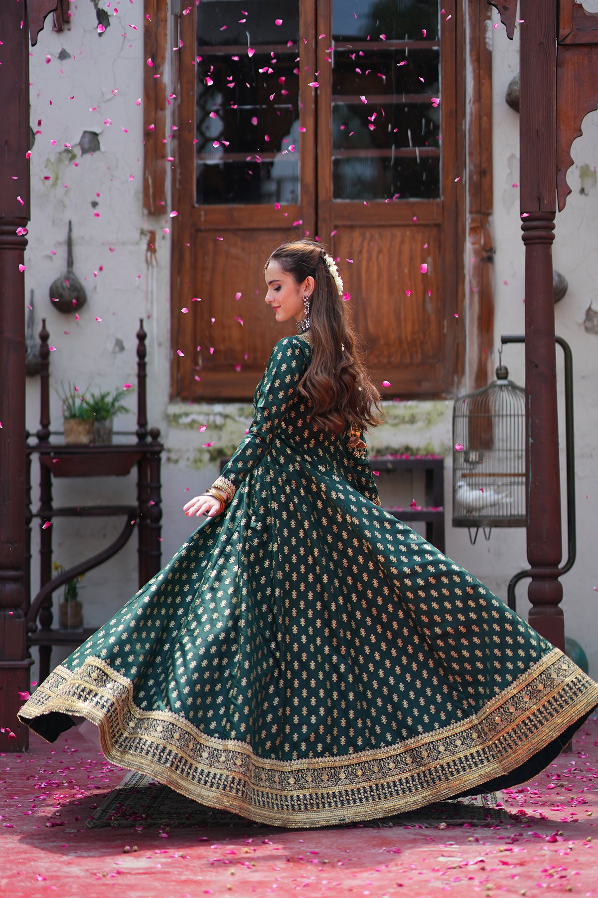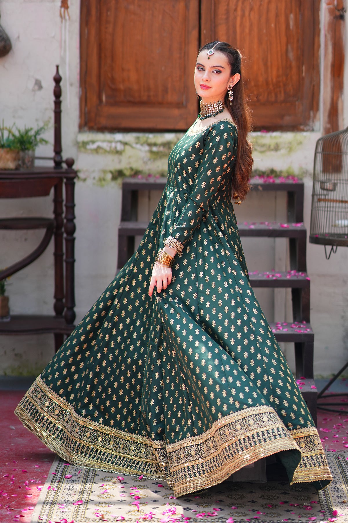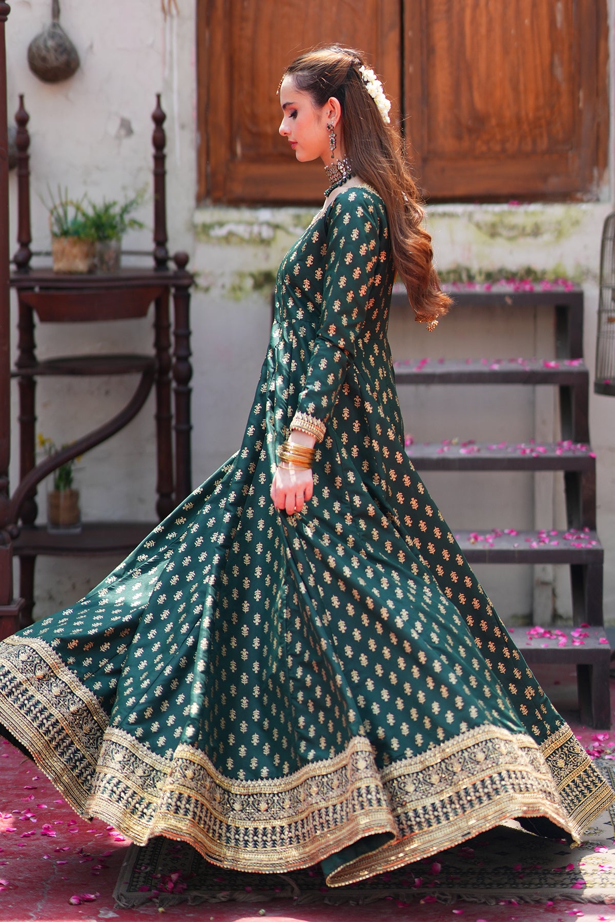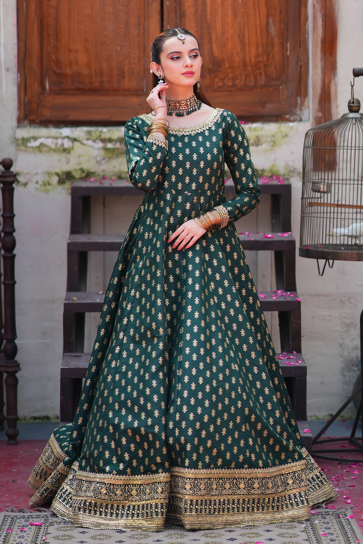 From the VASL collection, Afsaana is an elegant long maxi made with premium Kattan silk and breeze net.
