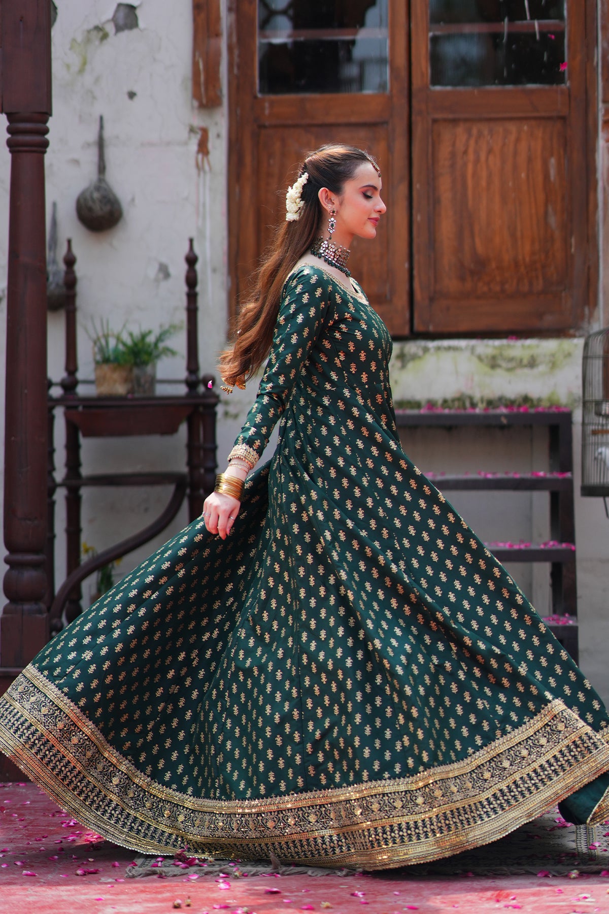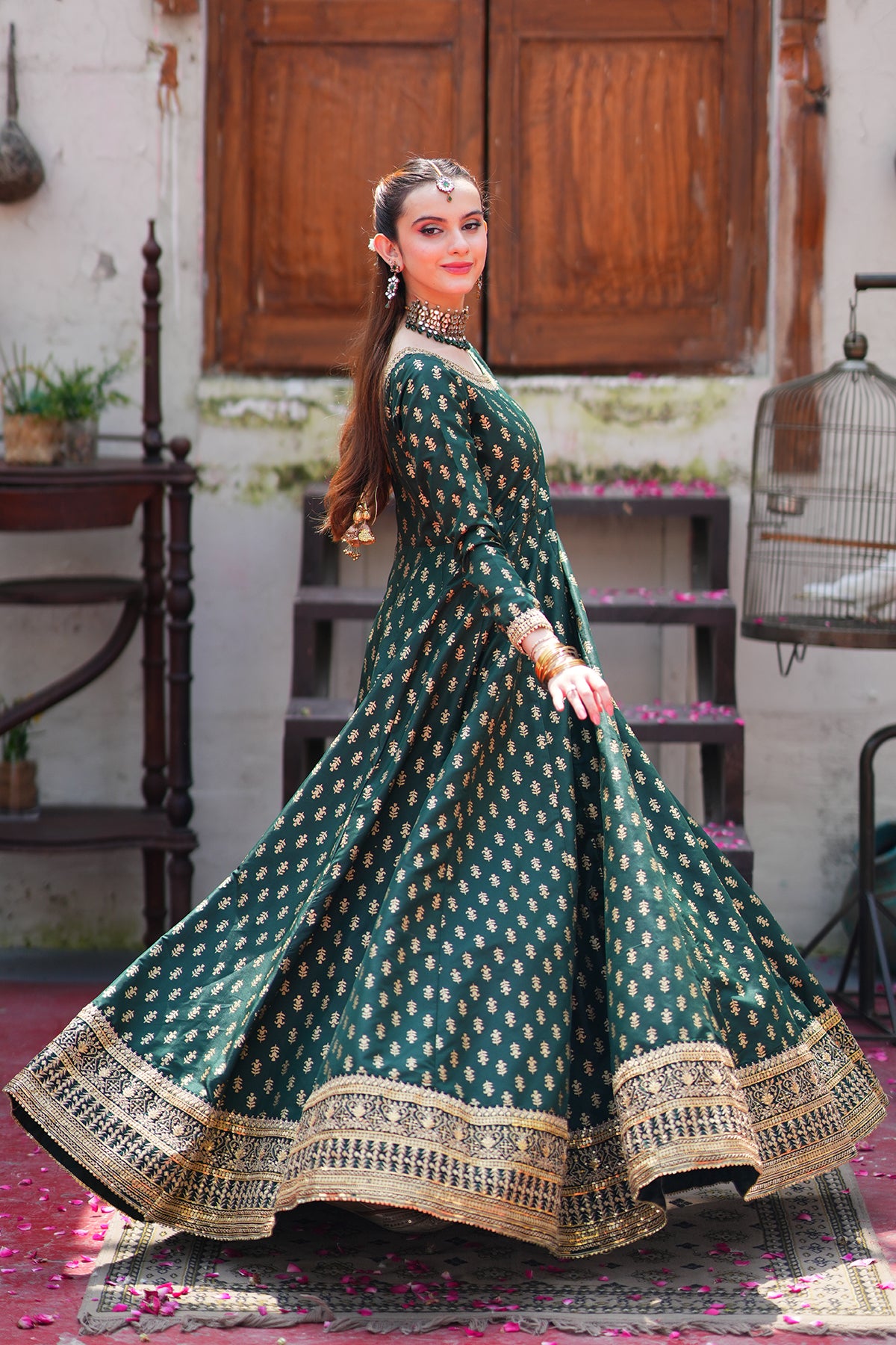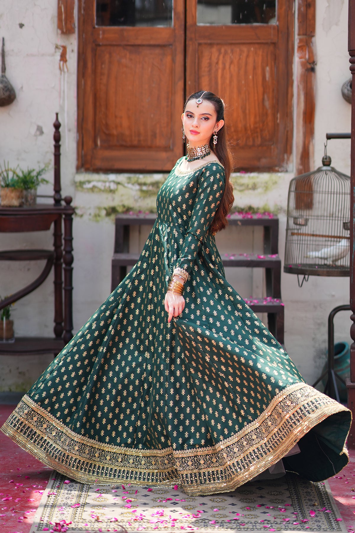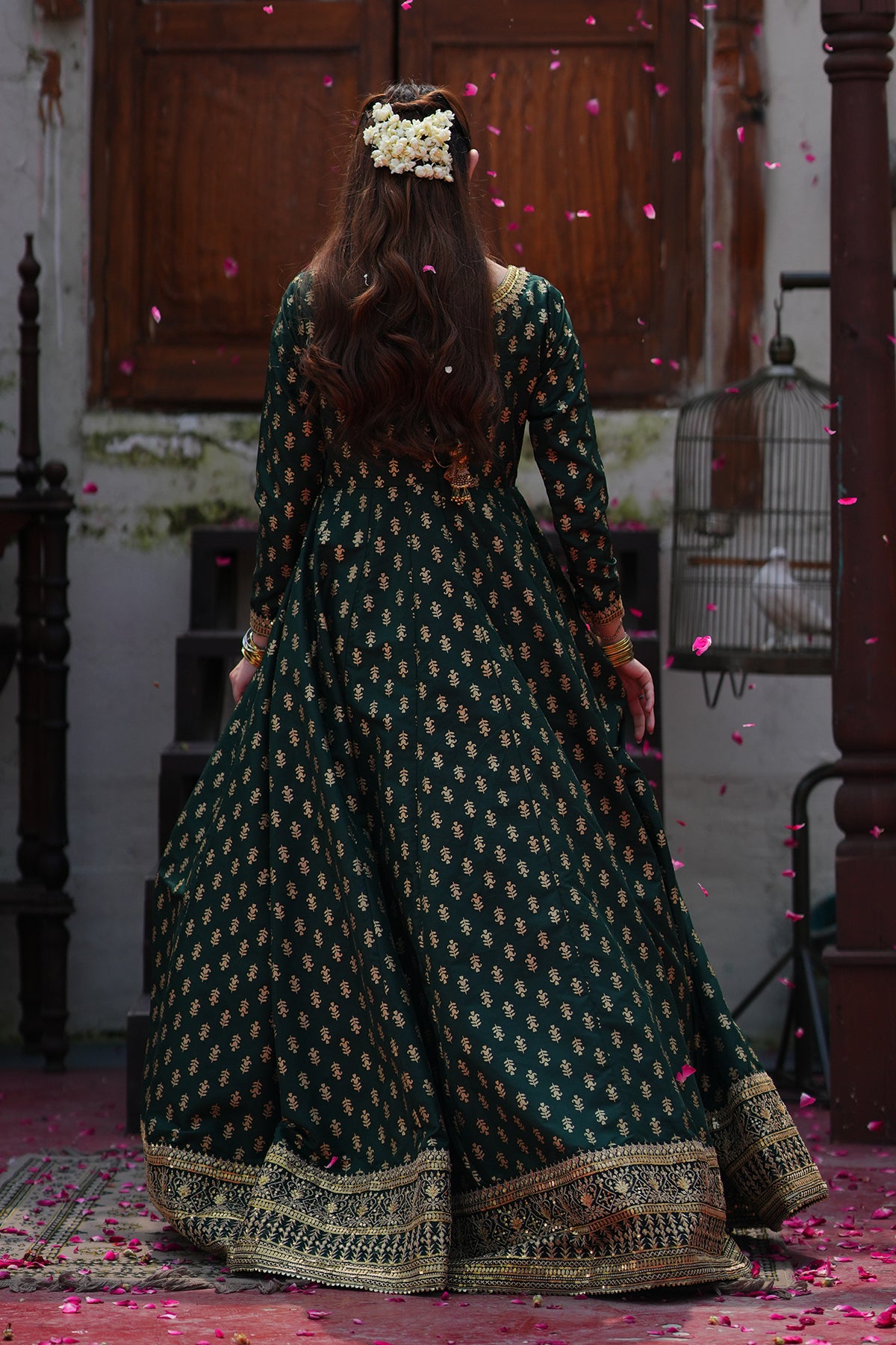From the VASL collection, Afsaana is an elegant long maxi made with premium Kattan silk and breeze net.