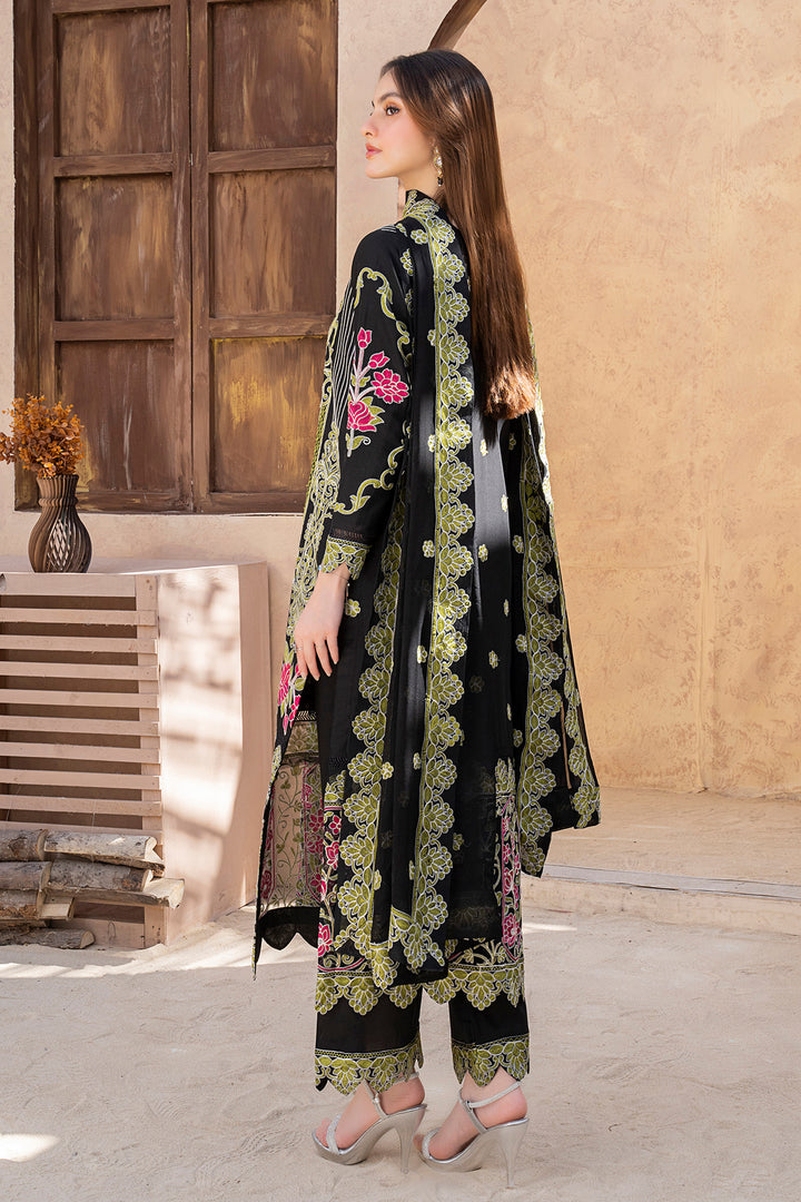 Step into elegance with Arzo from our Afsaneh Collection. Crafted from premium lawn, this A-line long shirt is adorned with intricate embroidery, exuding timeless charm. Paired with a flowy flapper and a soft medium chiffon dupatta, it’s the perfect ensemble for a graceful Eid look.